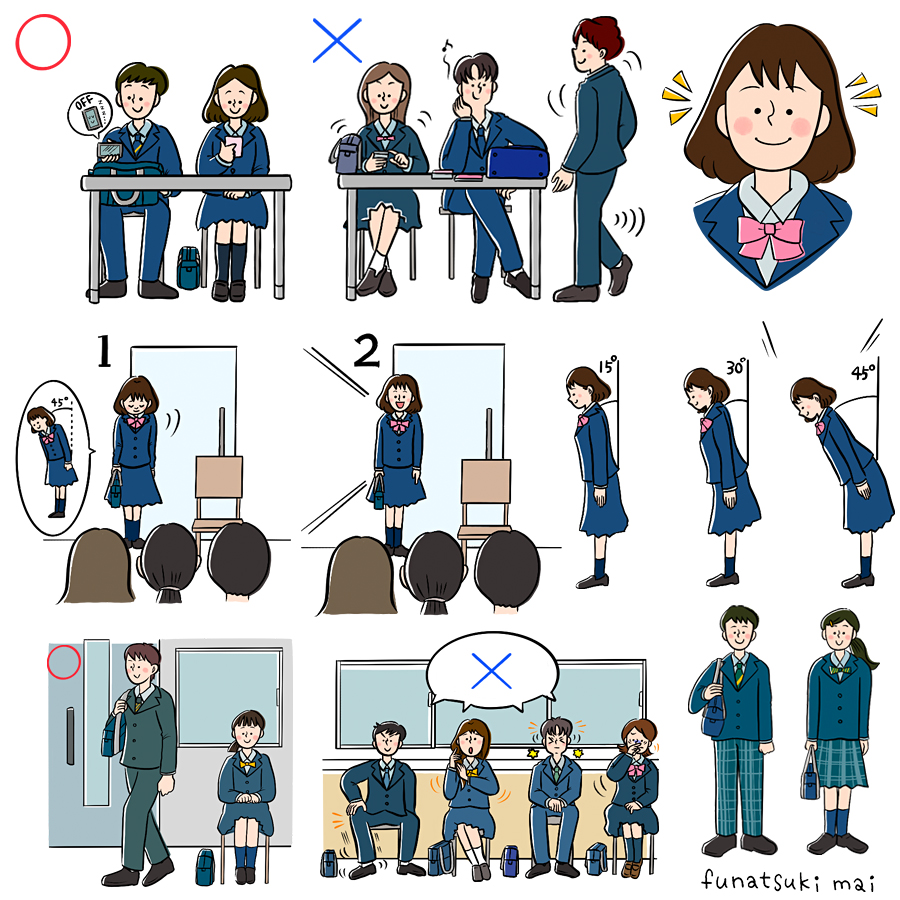 「スタディサプリ 進路 ♯高校生なう『大学受験の面接マナーはこれで完璧!入室から退室までをシミュレート!服装チェックリスト付き』記事内イラスト」