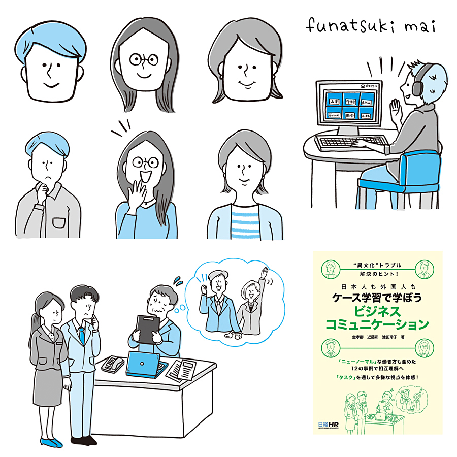 「日経HR「“異文化”トラブル解決のヒント!日本人も外国人もケース学習で学ぼう ビジネスコミュニケーション」/表紙・挿絵イラスト」